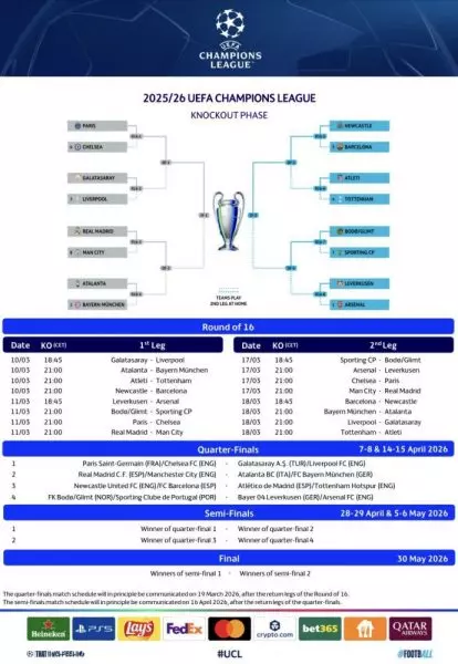 On Thursday, UEFA announced the schedule for the Round of 16 of the 2025-2026 Champions League during the draw organized by UEFA (the full schedule can be found here). It notably includes the matches of Paris Saint-Germain against Chelsea.