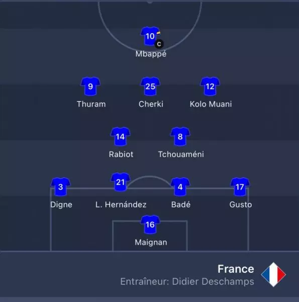 As part of the match for 3rd place in the Nations League, Equipe de France will be at the Mercedes-Benz Arena this Sunday (kick-off 3pm) to take on Germany. The match features 3 Paris Saint-Germain players, all French: Lucas Hernandez, Warren Zaïre-Emery and Désiré Doué. Hernandez to start. Here are the official teams for this Germany/France.